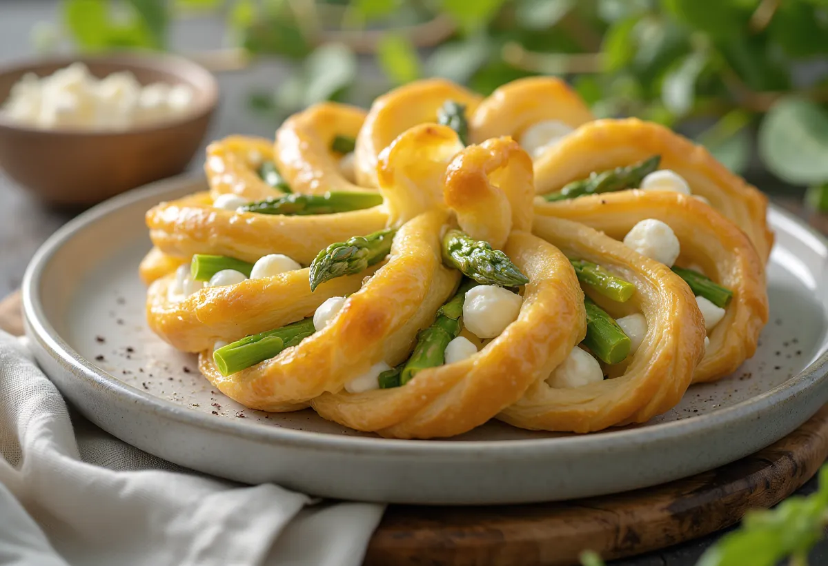 Forårets budbringer er asparges, hvis friske, grønne smag passer fremragende til den salte fetaost. Burek-formatet gør det muligt for aspargesen at dampe mellem dejlagene, hvilket bevarer vitaminer og sprødhed. Denne ret er en fejring af sæsonens køkken: enkel, men elegant.